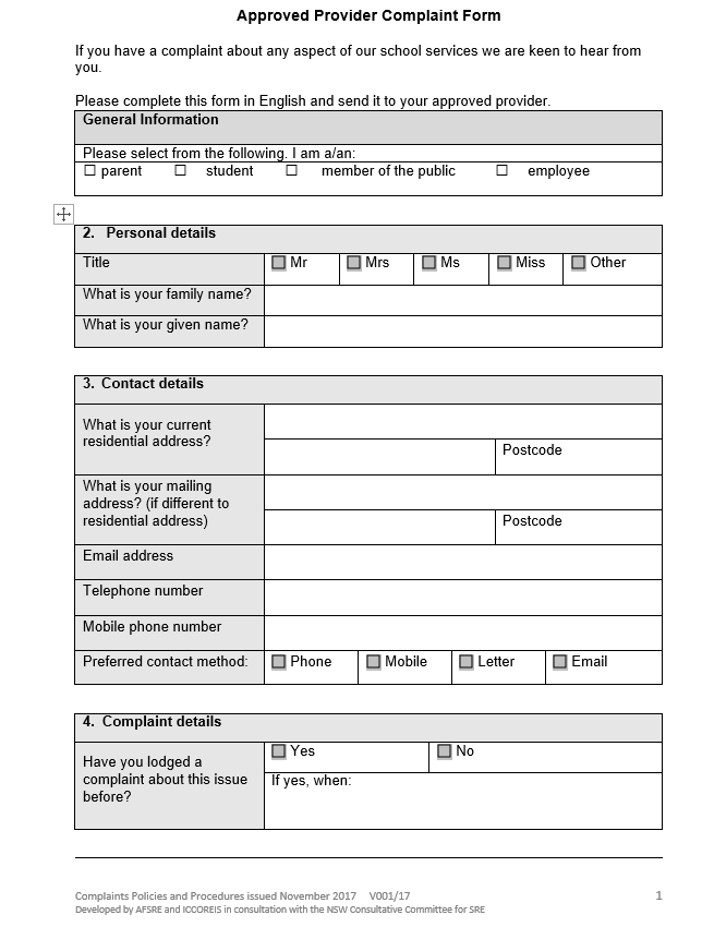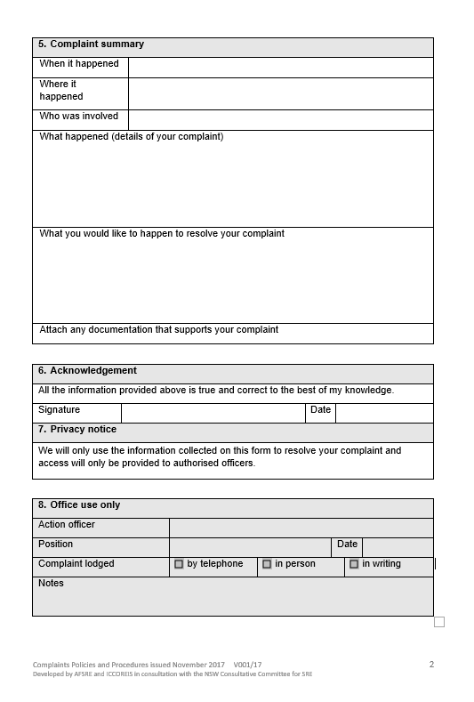SRE Complaint Form